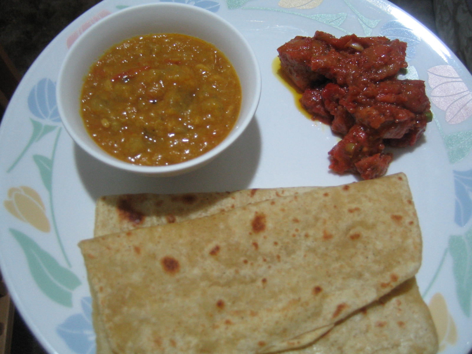 | Our dinner yesterday : ginger chicken,toorai-moong daal curry and paratha. |