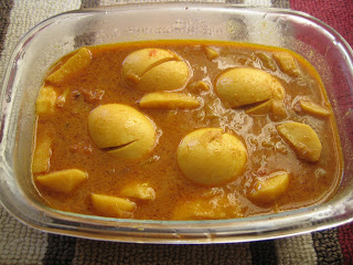 Yesterday i made this egg-arvi curvy for our dinner.it is very easy and quick recipe when you dont have much time to cook but you want some homemade food.its such a relaxing curry especially in summers.goes well with plain rice.usually we boil arvi before making a curry but once my dear hubby suggested me too cook it without boiling it and the result was good.it cooks fast like potato and is not that gooey as compared to the boiled one.peeling is little painfull if you have very small taros,so try picking medium size taros.