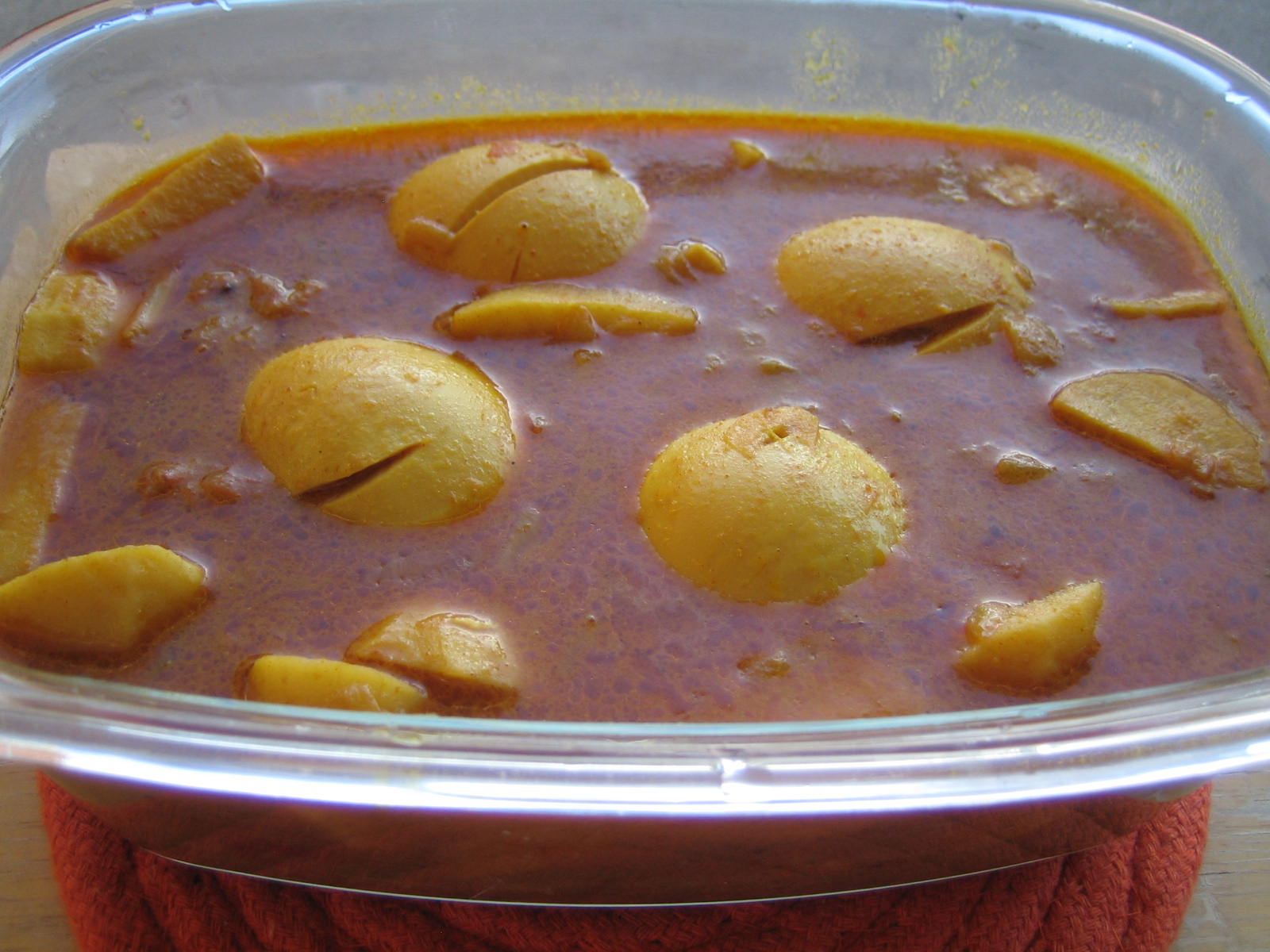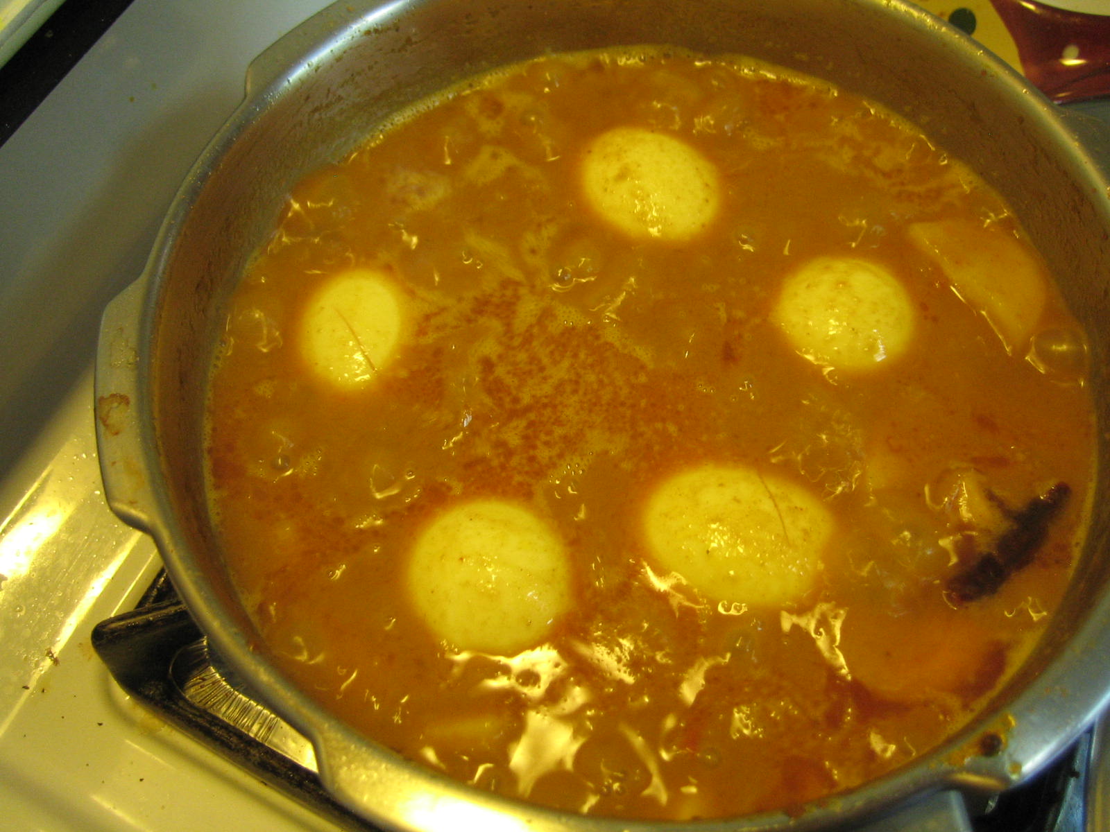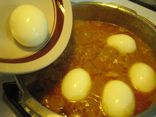 6.put cut marks on bolied eggs and slide them in the boiling gravy.
